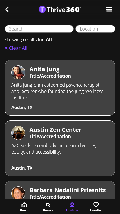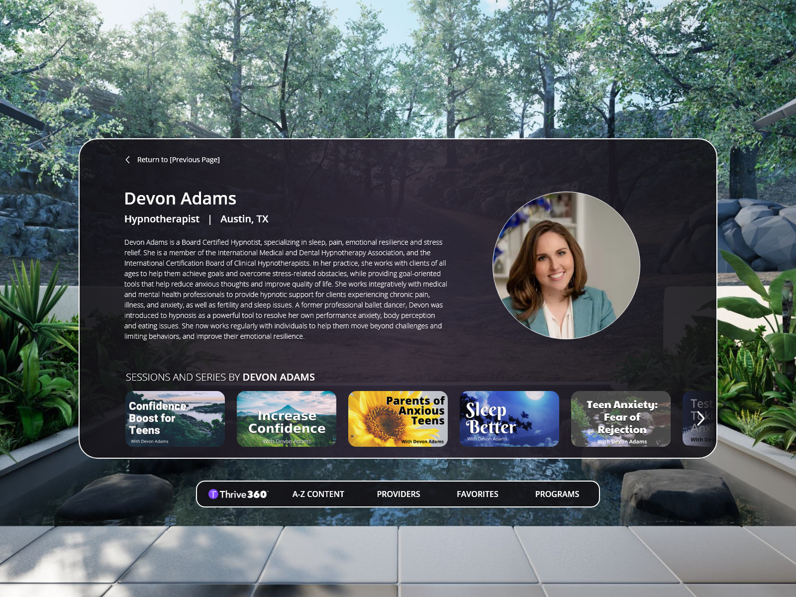 Providers: Thrive360 partnered with experts in different fields to film full 360 degree immersive content for the platform.