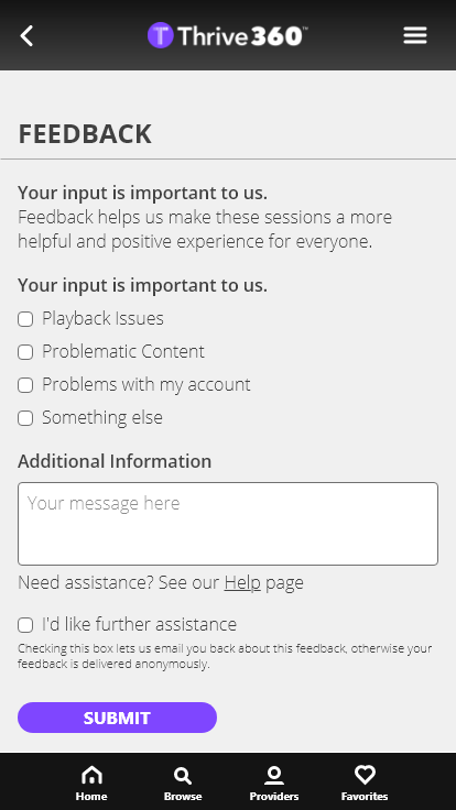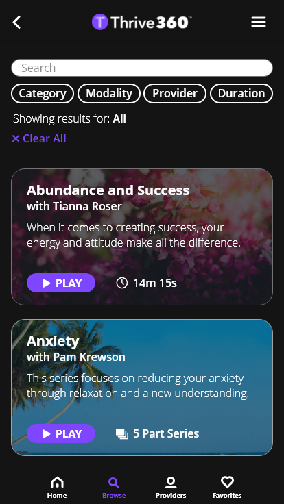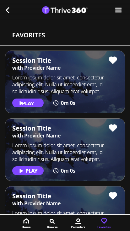 Programs: A playlist of sessions curated by Thrive360 intended to be viewed at intervals over a set period of time.